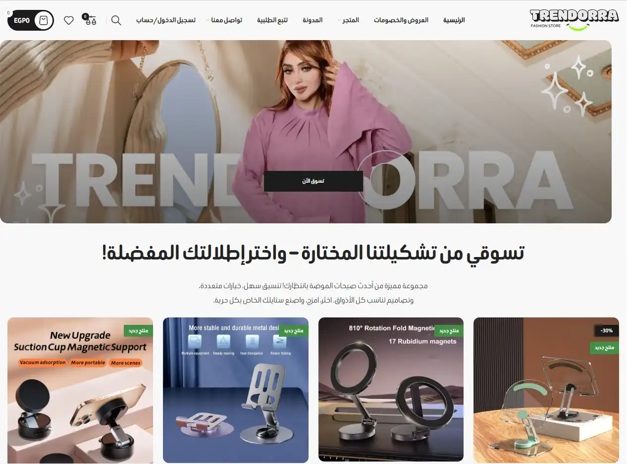 تم إنشاء مشروع Trendorra كواحد من أبرز المتاجر الإلكترونية الحديثة التي تستهدف السوق المصري بلمسة عصرية واحترافية في التصميم والتسويق. اعتمدنا على أحدث تقنيات ووردبريس لإطلاق متجر يحقق المعادلة بين البساطة والوظائف المتقدمة. المنصة تم تطويرها لتكون متوافقة مع مختلف الأجهزة والشاشات، ما يضمن للمستخدمين تجربة تسوق مريحة وسهلة من الهاتف أو الكمبيوتر.
