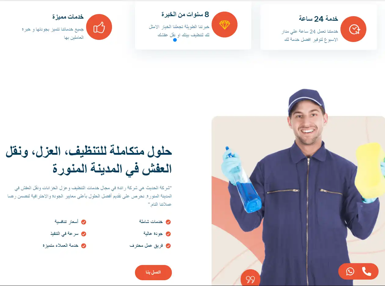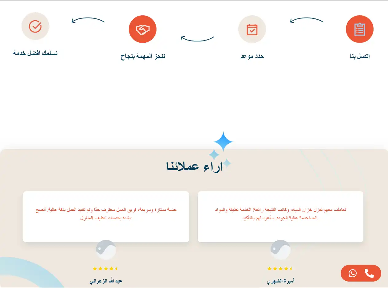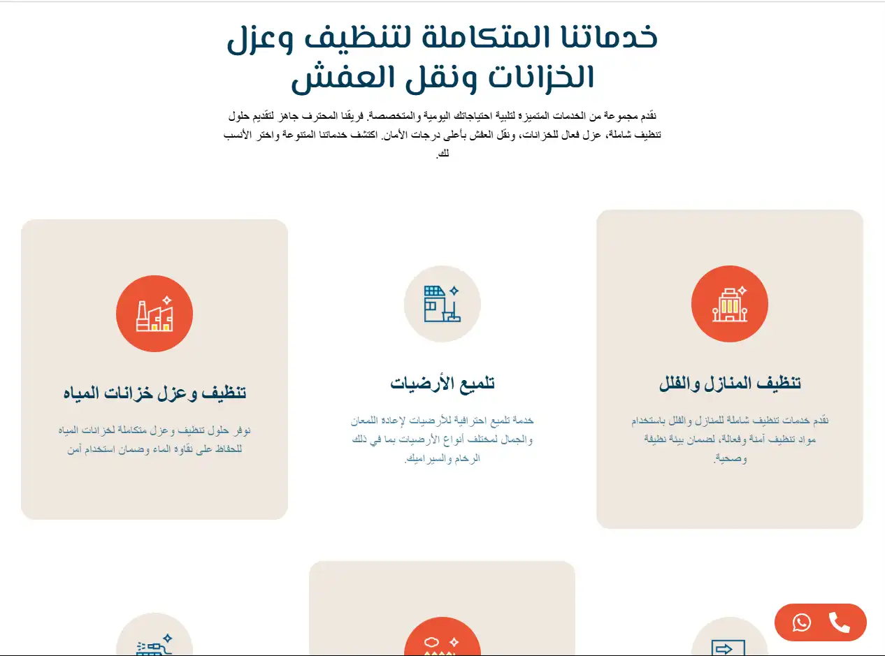 كما تم توفير قسم خاص بآراء العملاء والشهادات التي تدعم ثقة الزائر في الشركة، إضافة إلى معرض صور للأعمال السابقة يعكس مدى خبرة الشركة وجودة تنفيذها للمشاريع. هذه العناصر لا تخدم الجانب الجمالي فقط، بل تعد أدوات تسويقية فعالة تؤثر على قرارات العملاء المحتملين.