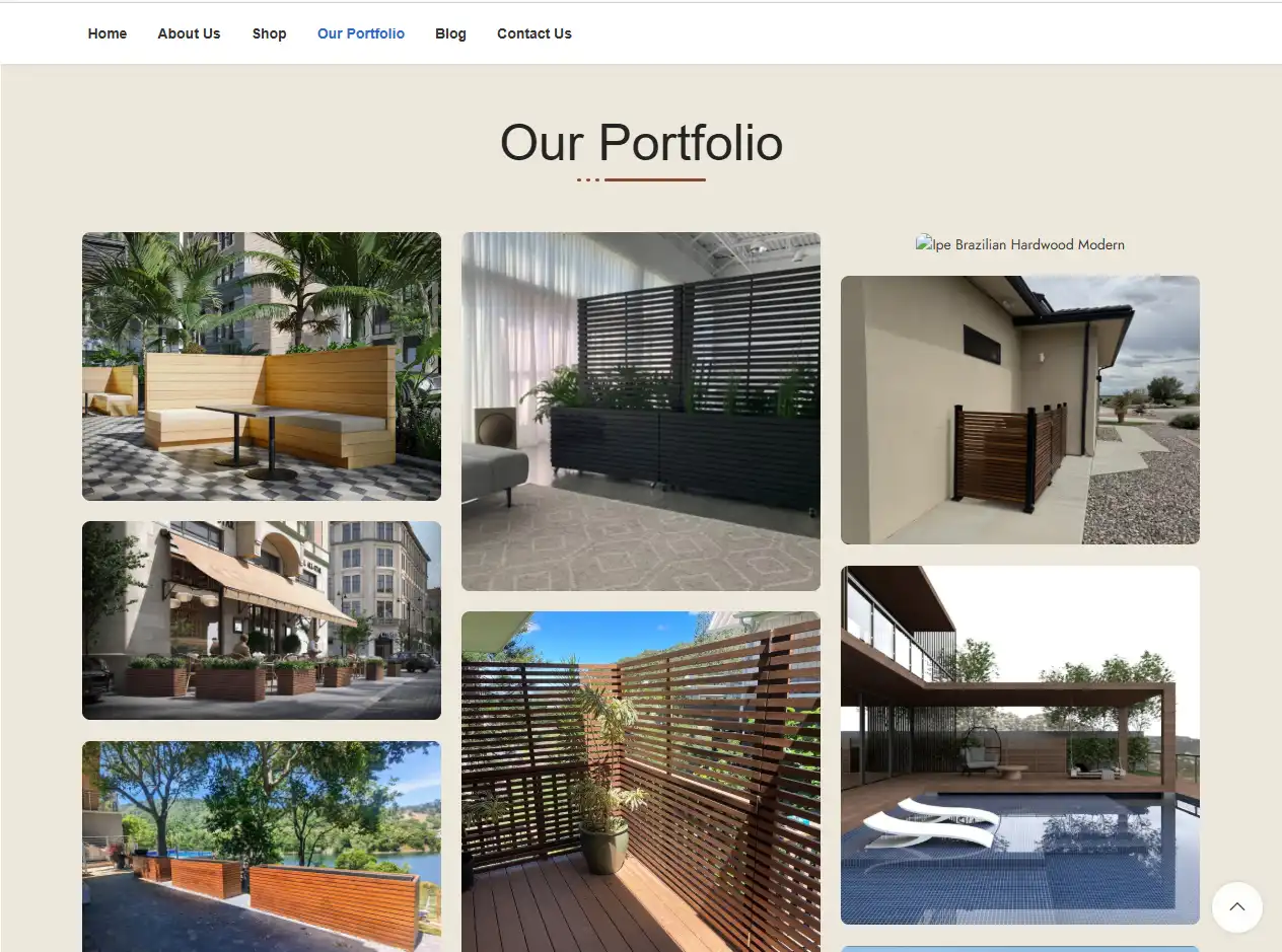 Design Modern هو متجر إلكتروني تم تطويره خصيصًا لبيع المنتجات الخشبية عالية الجودة مثل أسوار الحدائق، المظلات، جلسات الأثاث الخشبي، والديكورات الداخلية والخارجية.