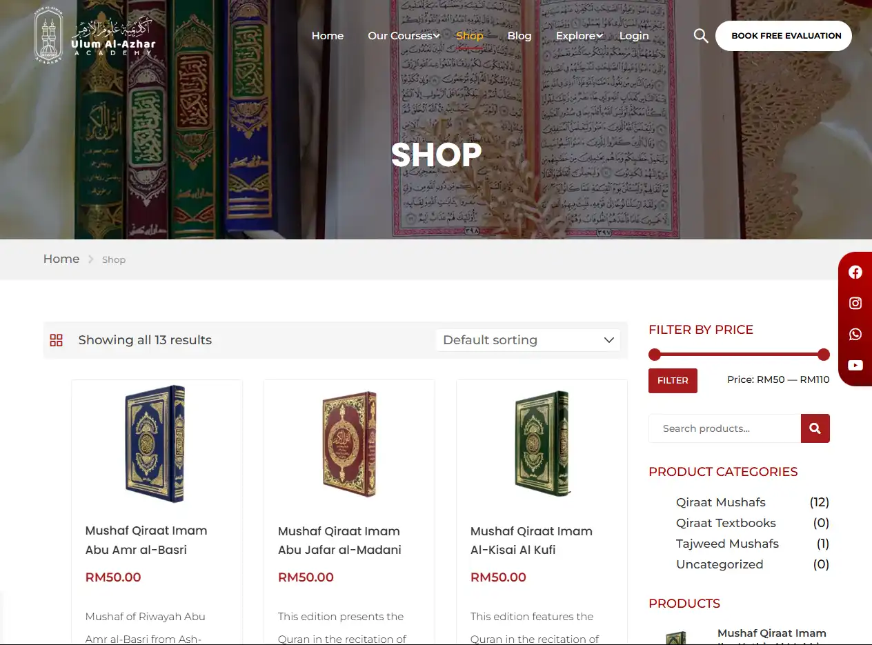 .ulumalazhar هو منصة تعليمية إسلامية في ماليزيا توفر دورات ودروسًا عبر الإنترنت تغطي مختلف مجالات العلوم الشرعية، إلى جانب متجر إلكتروني يقدم منتجات إسلامية متنوعة لدعم الثقافة والهوية الدينية.