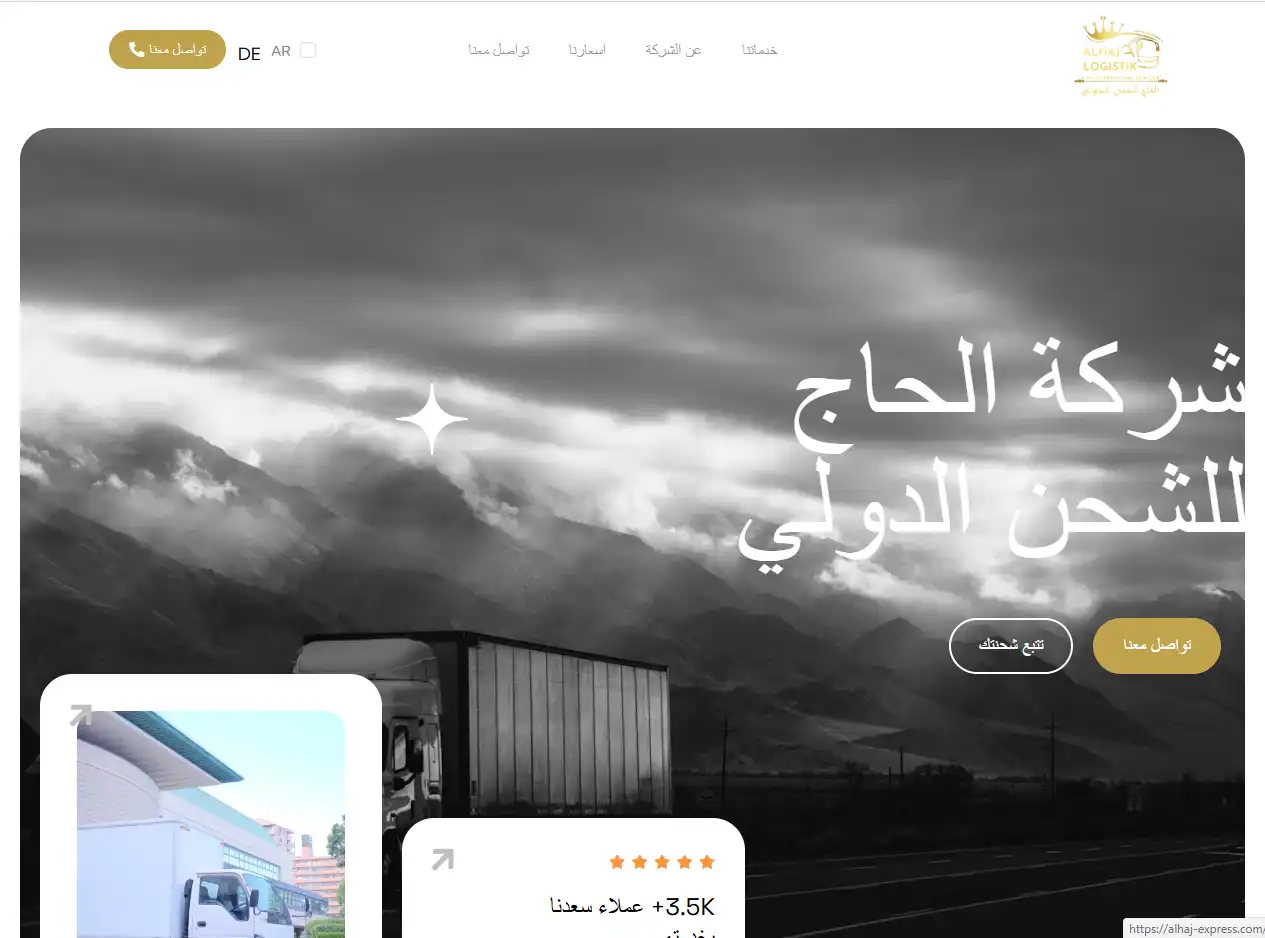 .Alhaj Express هو موقع متخصص في خدمات الشحن الدولي، صُمم ليكون واجهة عصرية وموثوقة لشركة الشحن. يقدم الموقع أقسامًا واضحة لخدمات الشركة، مع إمكانية تتبع الشحنات بسهولة لتعزيز ثقة العملاء.